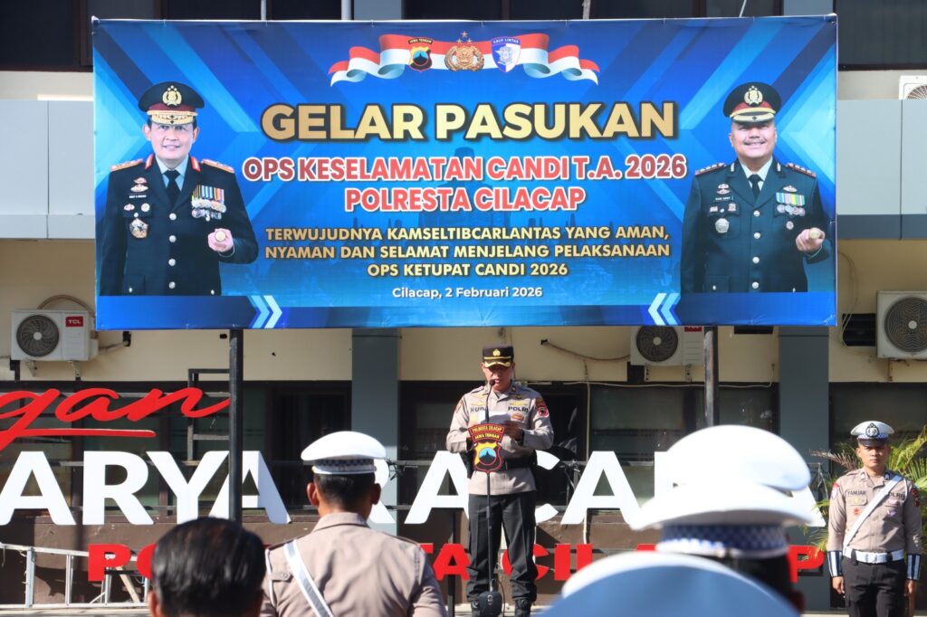 CILACAP,ikagawanews.id – Polresta Cilacap menggelar Apel Gelar Pasukan Operasi Keselamatan Candi Tahun 2026 sebagai tanda dimulainya operasi kepolisian terpusat dalam rangka menciptakan kondisi lalu lintas yang aman dan tertib menjelang Idul Fitri 1447 H.