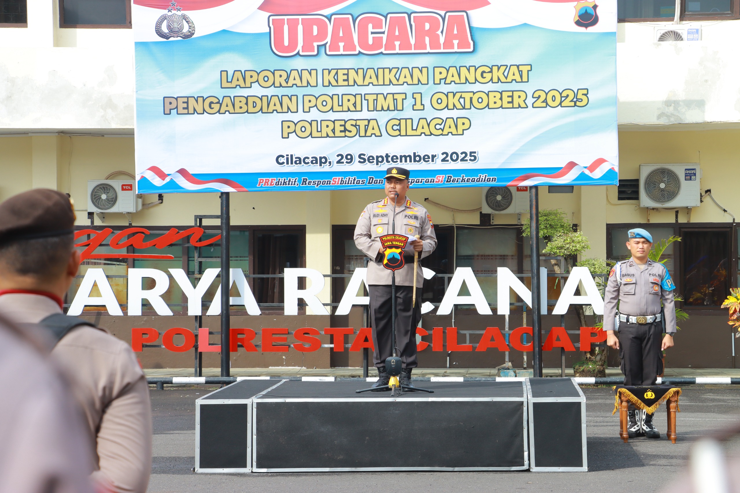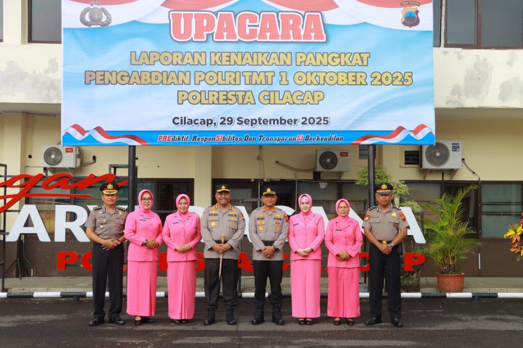 Upacara kenaikan pangkat pengabdian dipimpin langsung oleh Kapolresta Cilacap Kombes Pol Budi Adhy Buono, S.H., S.I.K., M.H.,. yang berlangsung di Lapangan Apel Polresta Cilacap, pada Senin pagi (29/09/2025).
