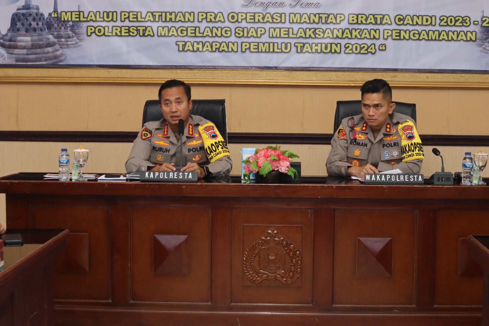 Kapolresta Magelang Polda Jawa Tengah KBP Ruruh Wicaksono, S.I.K., S.H., M.H., menjelaskan bahwa Pemilu 2024 memiliki tantangan dan kompleksitas tersendiri. Karena pertama kali diselenggarakan secara serentak pada tahun yang sama, mencakup Pilihan Legislatif, Pilihan Presiden, dan Pilihan Kepala Daerah di seluruh Indonesia.