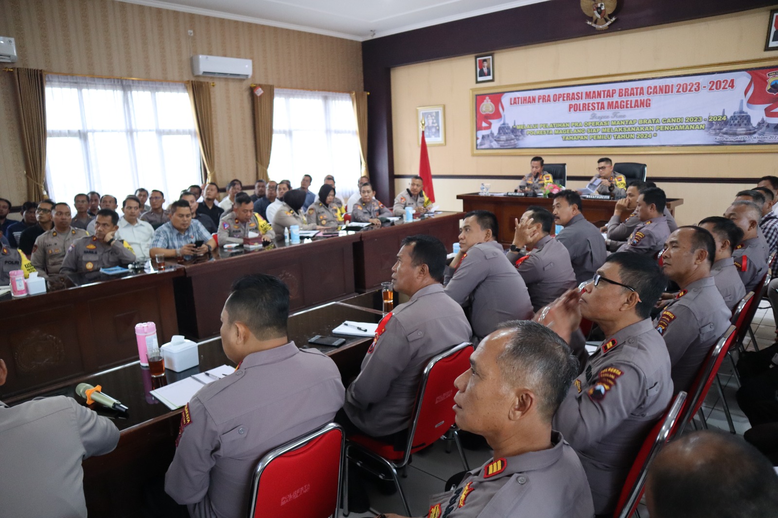 MAGELANG,ikagawanews.id  – Dalam persiapan menjelang Pemilu 2024, Polresta Magelang Polda Jawa Tengah menggelar Latihan Pra Operasi Kepolisian Terpusat yang diberi sandi “Mantap Brata Candi 2023-2024”. Latihan ini berlangsung di Aula Polresta Magelang pada Rabu (25/10/2023) pagi.