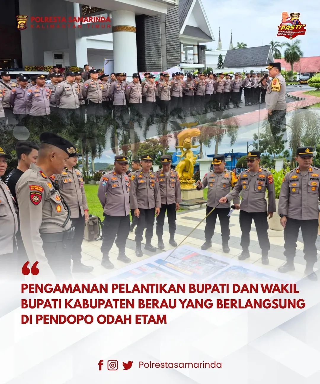 SAMARINDA,ikagawanews.id – Polresta Samarinda menggelar Apel Pengamanan menjelang pelantikan Bupati dan Wakil Bupati Kabupaten Berau masa jabatan 2025–2030 yang berlangsung di Pendopo Odah Etam, Komplek Kantor Gubernur Kaltim, Jalan Gajah Mada, Samarinda, pada Selasa (14/4/2025) pagi.