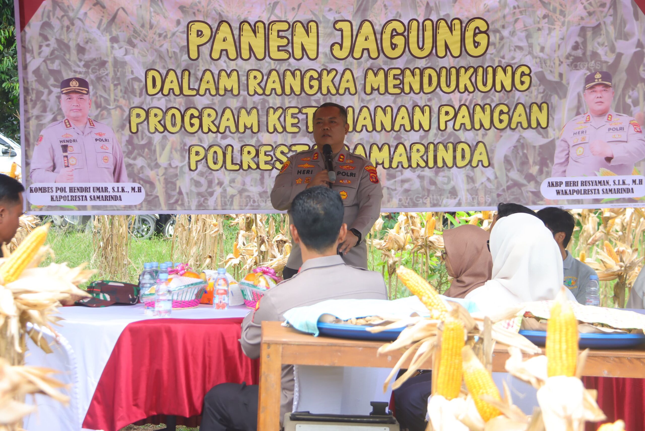 Dalam sambutannya, AKBP Heri Rusyaman menyampaikan apresiasi atas sinergi yang terjalin antara kepolisian, pemerintah, dan petani dalam mendukung program ketahanan pangan nasional. Ia menegaskan bahwa kegiatan ini merupakan wujud nyata dukungan Polresta Samarinda terhadap pengembangan budidaya jagung sebagai komoditas unggulan.