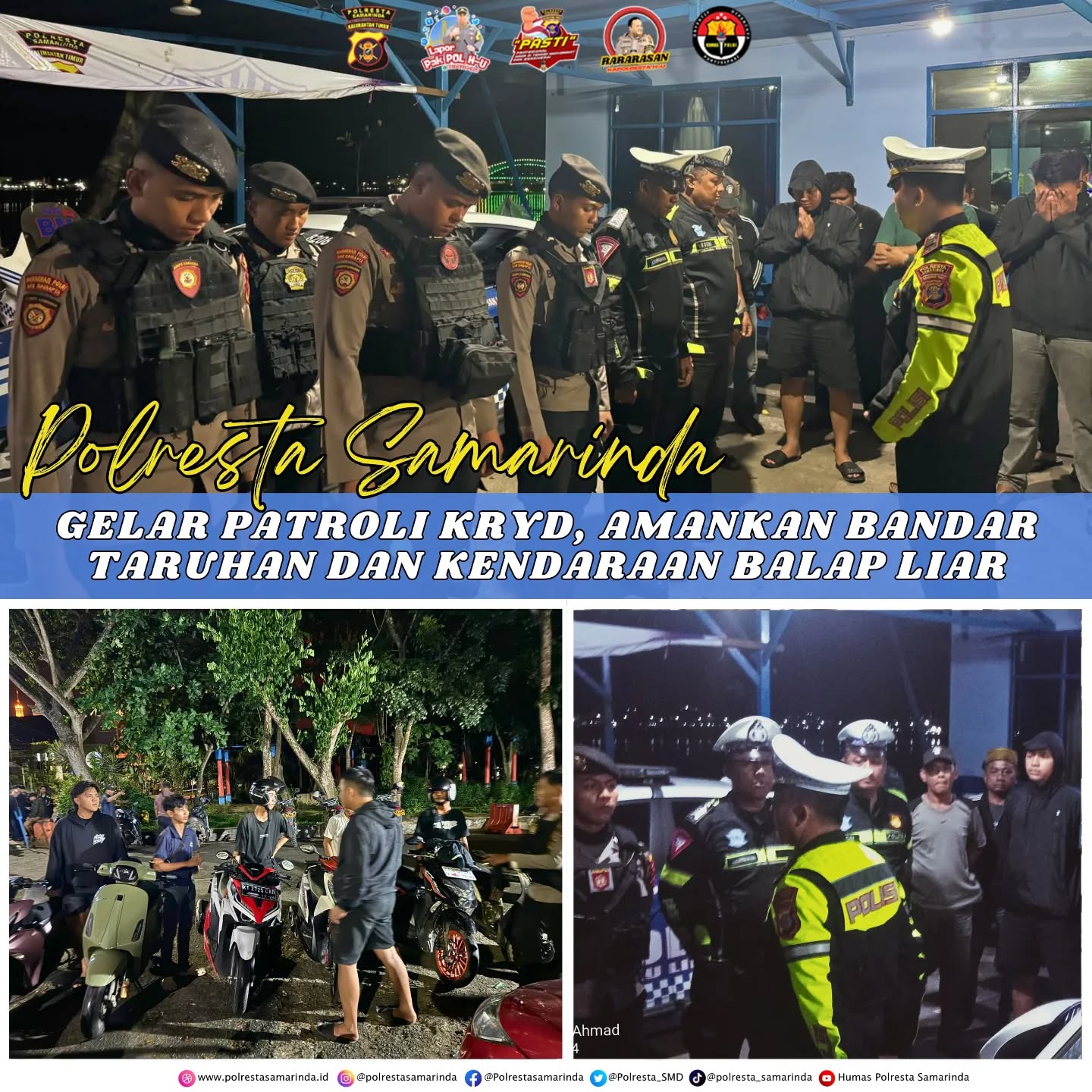 Polresta Samarinda Gelar Patroli KRYD, Amankan Bandar Taruhan dan Kendaraan Balap Liar