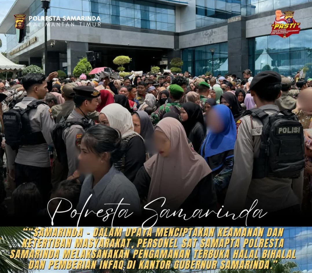 SAMARINDA,ikagawanews.id  – Satuan Samapta Polresta Samarinda melaksanakan pengamanan terbuka dalam rangka kegiatan Halalbihalal dan pemberian infaq di Kantor Gubernur Kalimantan Timur. Patroli ini dipimpin oleh Unit Patroli 110 Beat 01,06,07 Regu 3, yang berlangsung sejak pukul 10.00 WITA hingga selesai,2 April 2025.