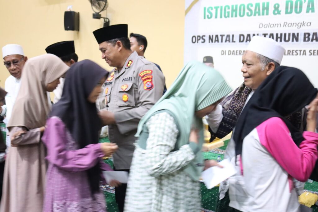 Selain pelaksanaan pengajian dan doa bersama, kegiatan juga diisi dengan pemberian santunan kepada anak-anak yatim piatu, sebagai wujud kepedulian sosial Polresta Serang Kota dan instansi terkait terhadap masyarakat, khususnya menjelang perayaan Natal dan Tahun Baru 2026.