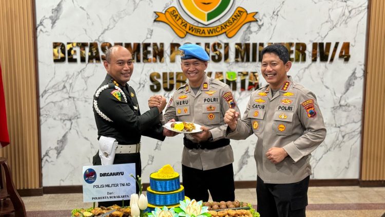 Polresta Surakarta Berikan Kejutan Tumpeng Ulang Tahun untuk POM TNI AD di HUT ke-79