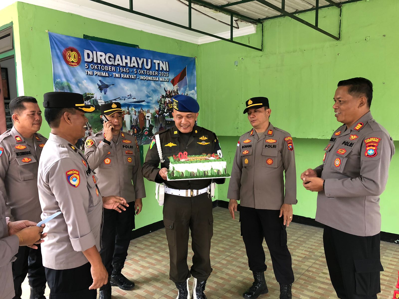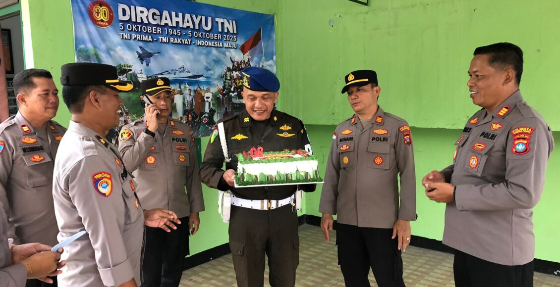 TANJUNGPINANG,ikagawanews.id – Dalam suasana penuh kebersamaan, Polresta Tanjungpinang Polda Kepulauan Riau memberikan surprise berupa kue ulang tahun kepada jajaran TNI di wilayah Kota Tanjungpinang. Kegiatan ini dilakukan dalam rangka memperingati Hari Ulang Tahun ke-80 Tentara Nasional Indonesia (TNI) dengan mengusung tema “TNI Prima – TNI Rakyat – Indonesia Maju.” Momen ini menjadi wujud nyata sinergitas dan soliditas antara TNI dan Polri di Kota Tanjungpinang, Minggu, 5 Oktober 2025.