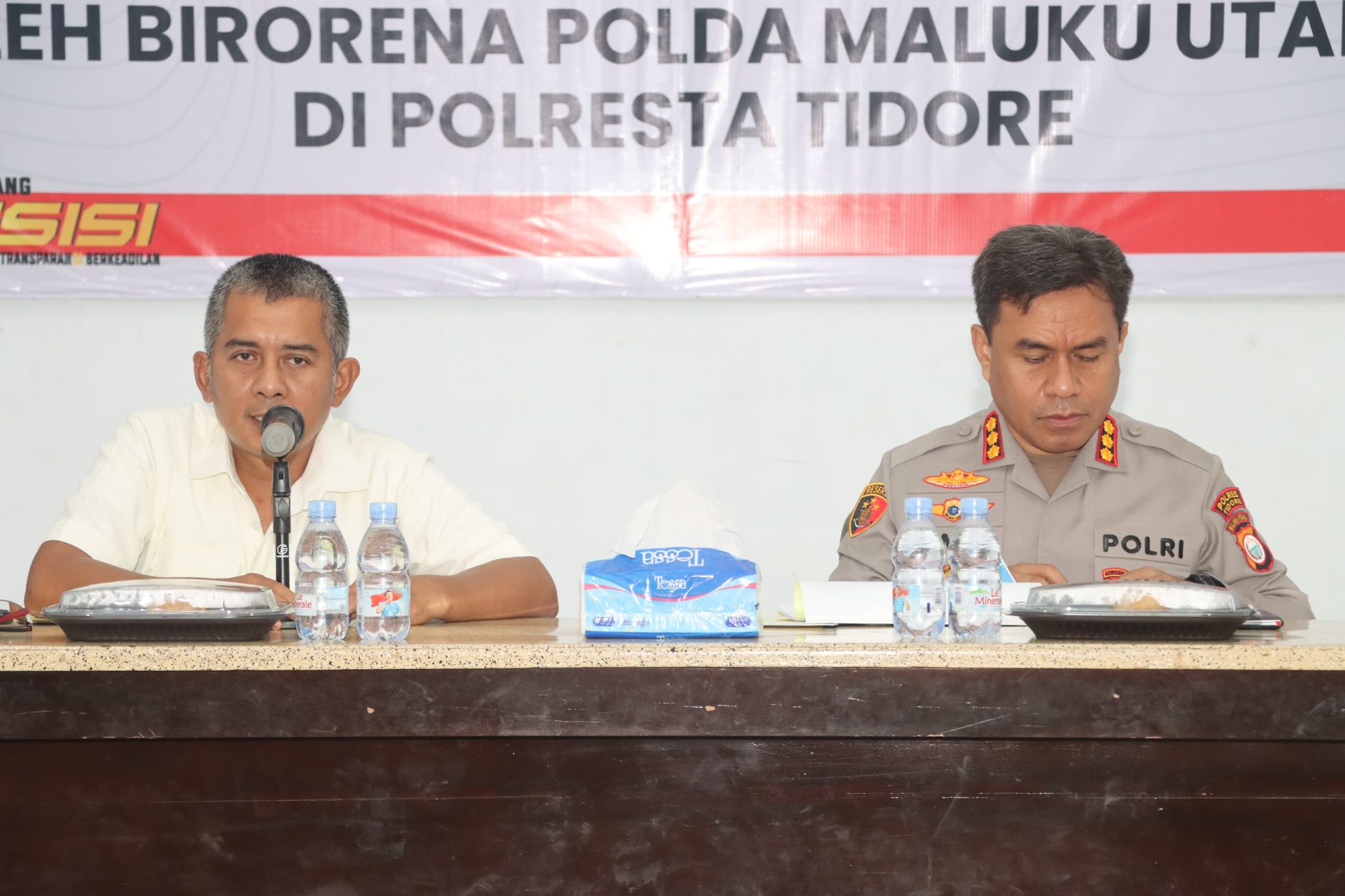 Kegiatan ini dihadiri langsung oleh Kapolresta Tidore Kombes Pol. Ampi Mesias Von Bulow, S.I.K., M.H., Karorena Polda Malut Kombes Pol. Welly Abdillah, S.H., S.I.K., M.H. selaku Ketua Tim, Plt. Wakapolresta Tidore Kompol Muhammad Jufri Dukomalamo, S.H., M.H., para Pejabat Utama (PJU) Polresta Tidore, para Kapolsek jajaran, para Bamin dari masing-masing fungsi, serta Tim dari Biro Rena Polda Maluku Utara.
