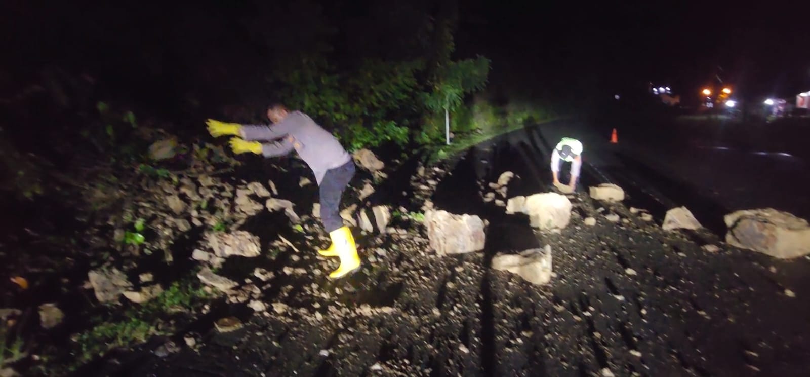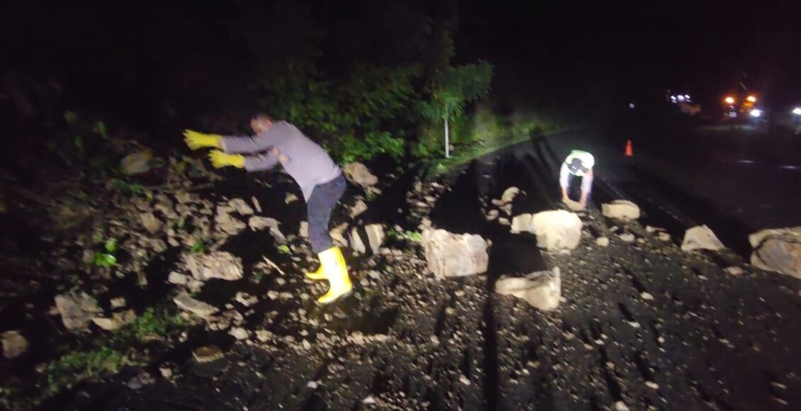“Personel Polsek Jaya di bawah pimpinan Kapolsek Jaya Ipda Yuniadi, S.E langsung bertindak dengan membersihkan material batu gunung di badan jalan secara manual,” ungkapnya.