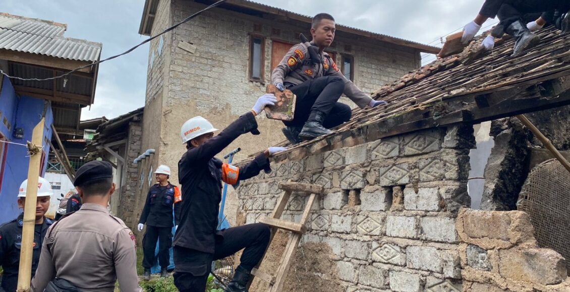 CIANJUR,ikagawanews.id – Personel gabungan Polri diterjunkan untuk membersihkan material bangunan yang rusak dan ambruk akibat gempa bumi berkekuatan M 5,6 SR di Kabupaten Cianjur, Jawa Barat.