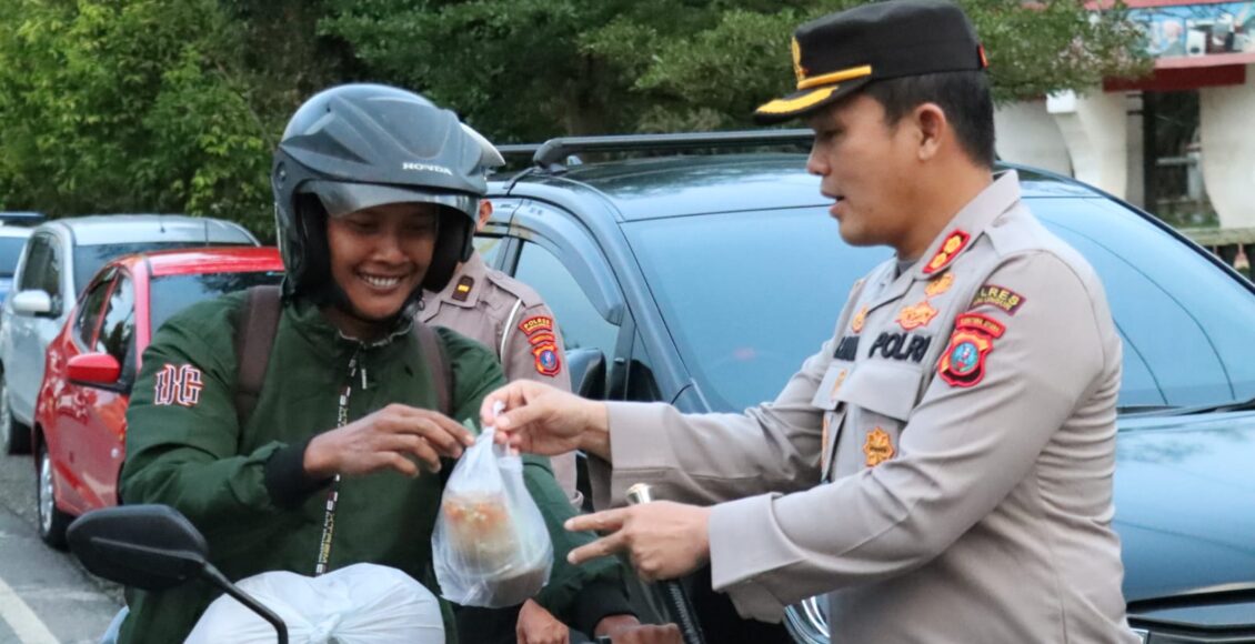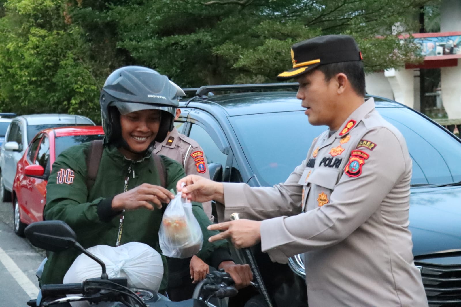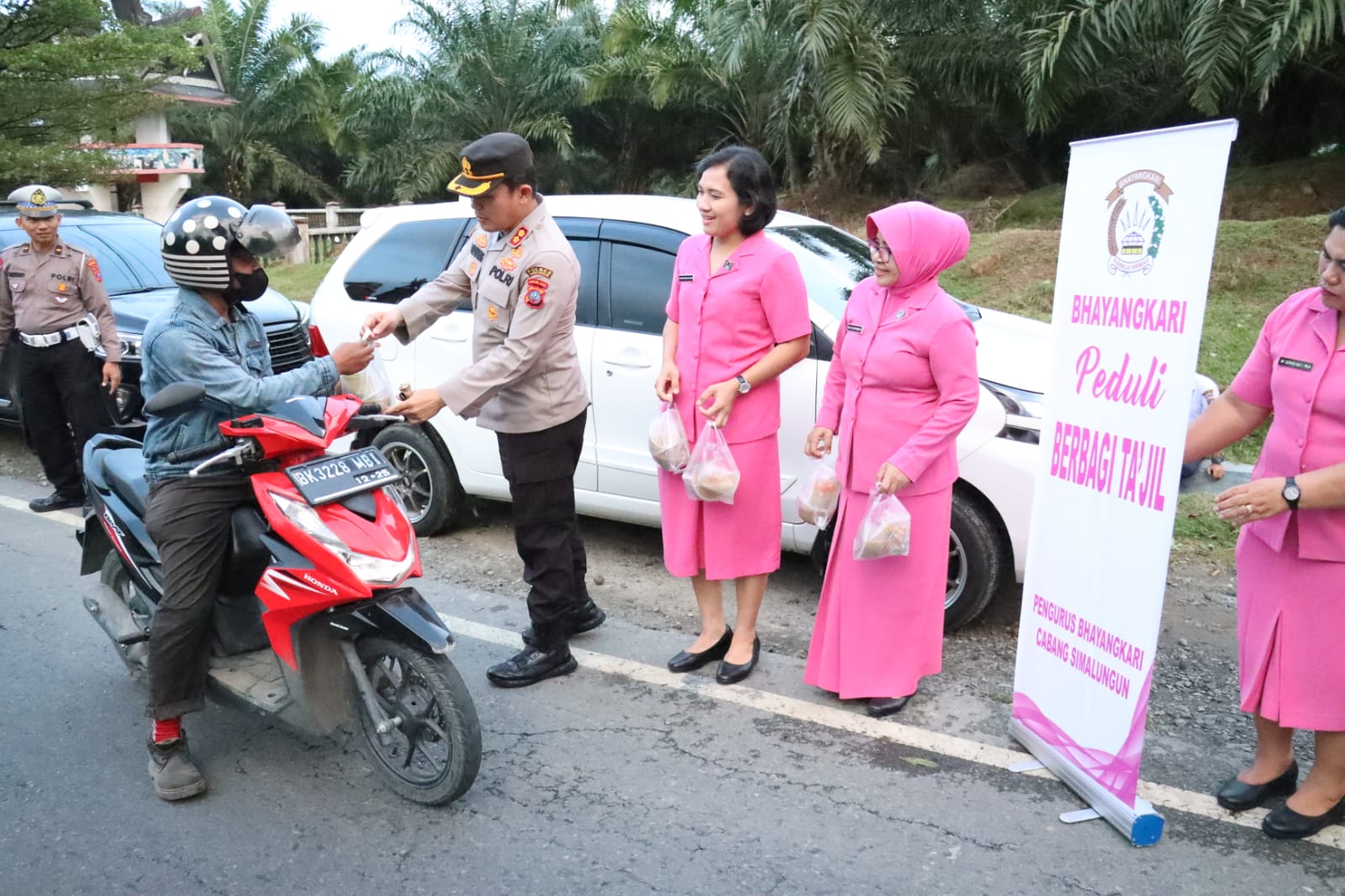 Polri Peduli Kapolres Bersama Ketua Bhayangkari Simalungun Bagi-bagi Takjil Pada Pengendara