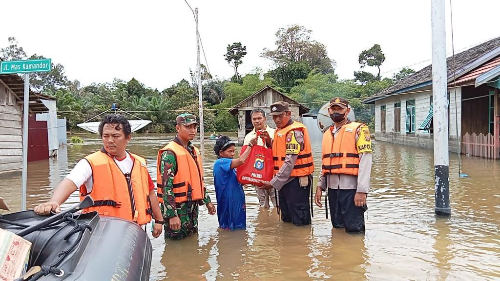 Kapolres Kotawaringin Barat AKBP Bayu Wicaksono melalui Kapolsek Arut Utara menjelaskan bahwa selain memberikan bansos, pihaknya juga melaksanakan monitoring situasi dan kondisi masyarakat yang terdampak banjir.
