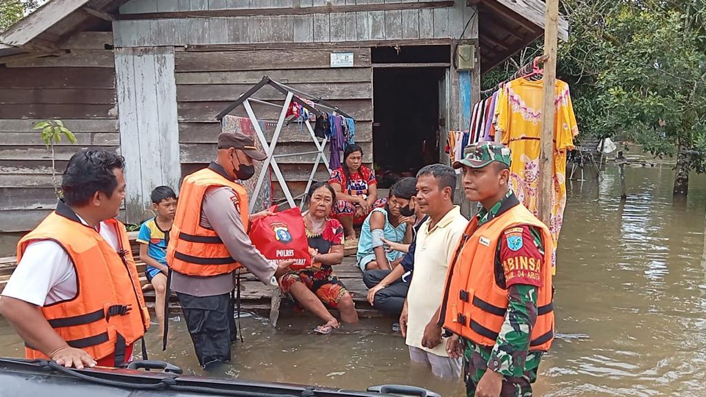 Kapolres Kotawaringin Barat AKBP Bayu Wicaksono melalui Kapolsek Arut Utara menjelaskan bahwa selain memberikan bansos, pihaknya juga melaksanakan monitoring situasi dan kondisi masyarakat yang terdampak banjir.