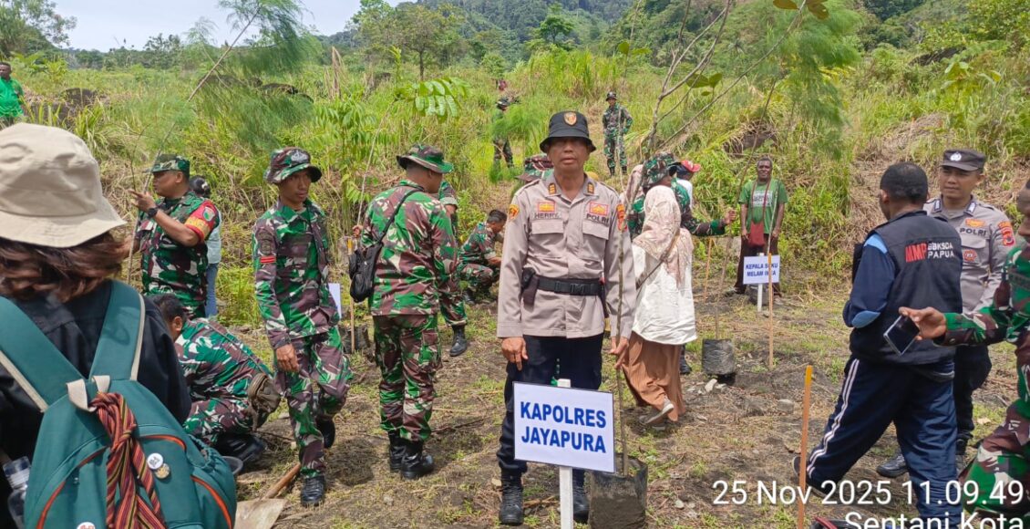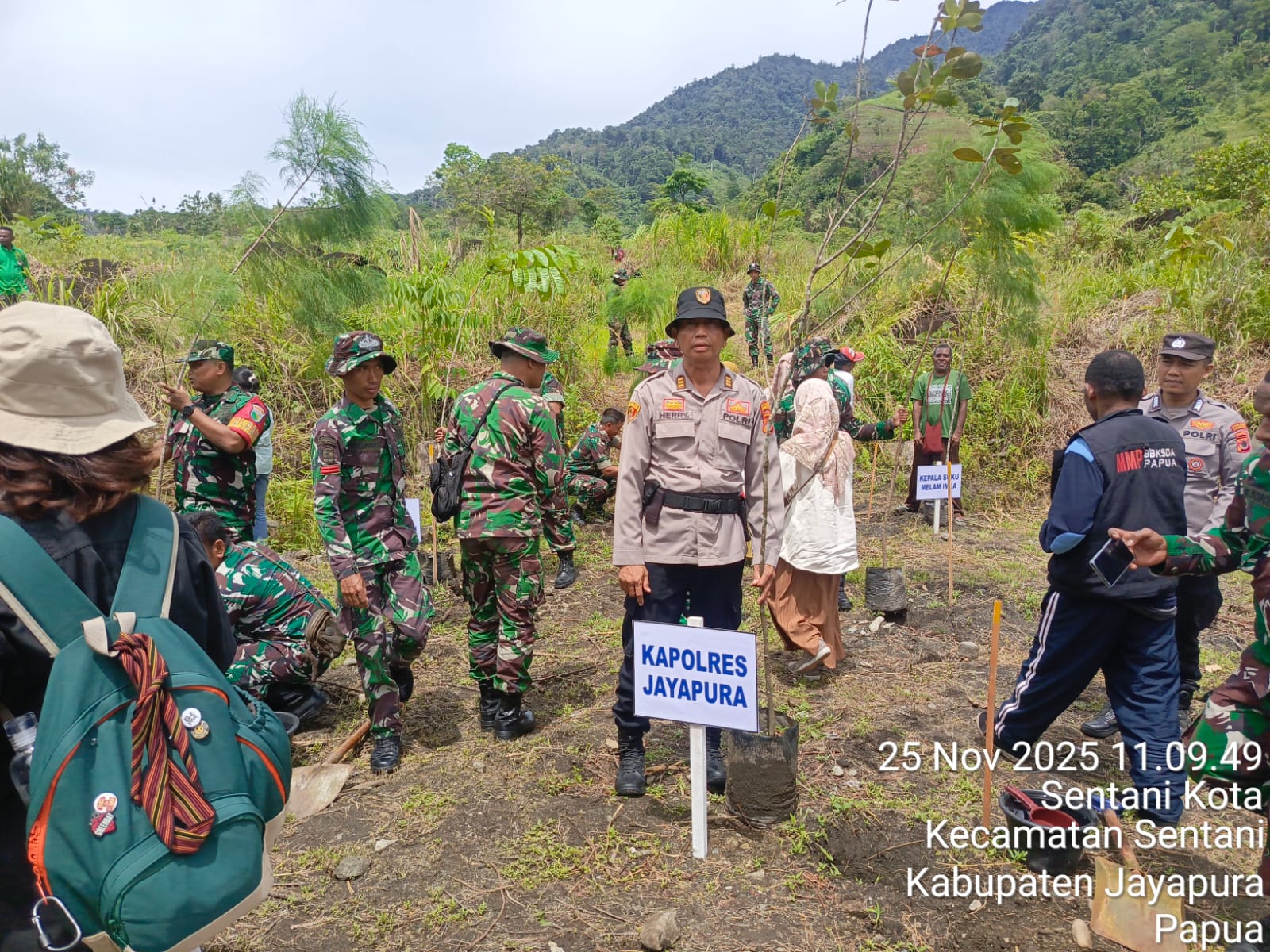 Sentani,ikagawanews.id – Dalam rangka mendukung kelestarian lingkungan dan program penghijauan di wilayah Kabupaten Jayapura, Polsek Sentani Kota bersama instansi terkait dan Pemerintah Kabupaten Jayapura melaksanakan kegiatan penanaman pohon bertempat di Kampung Taruna, Kelurahan Hinekombe, Kabupaten Jayapura, Selasa (25/11).