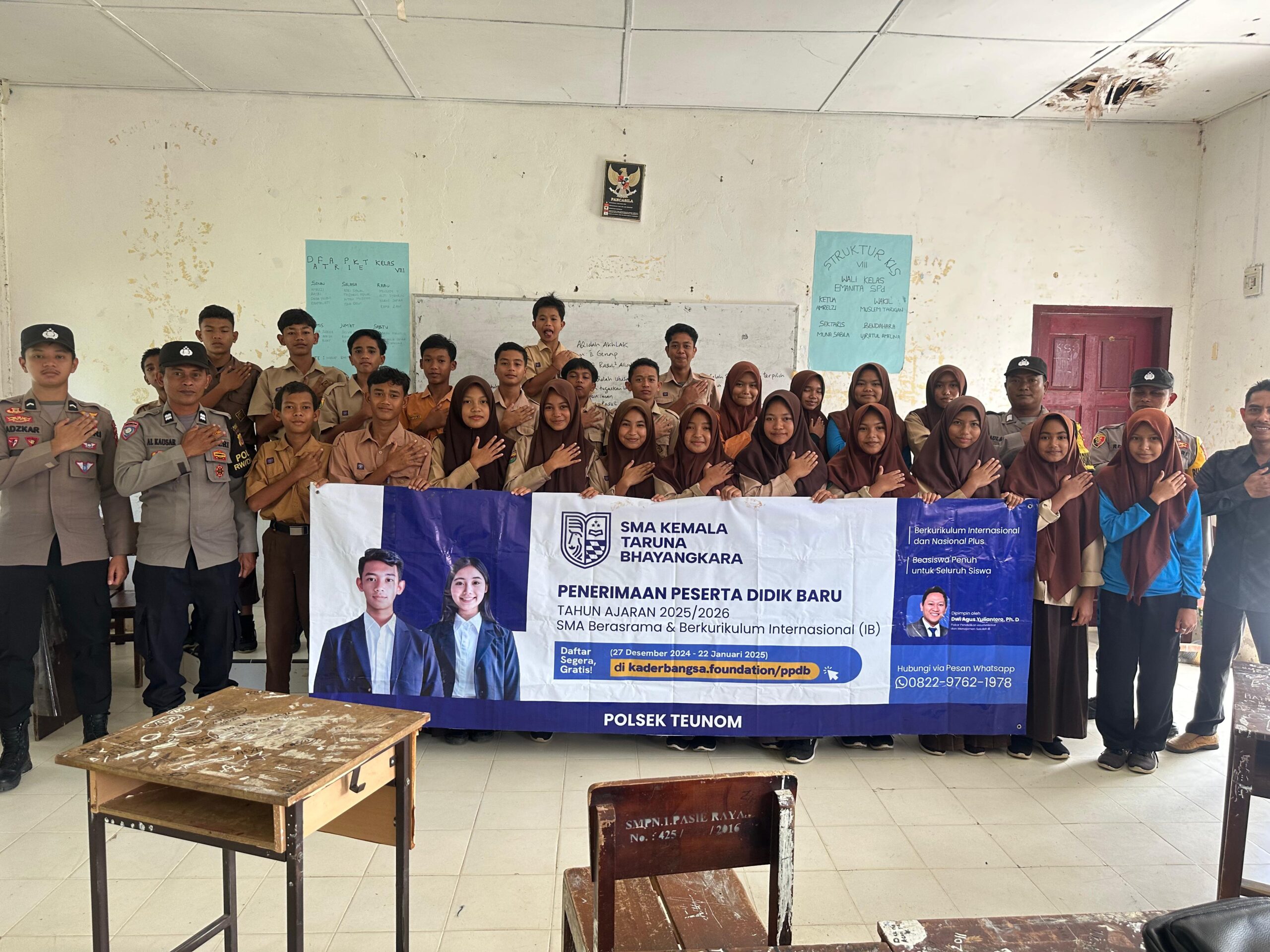 Polsek Teunom Sosialisasi Peserta Didik Baru SMA Kemala Taruna Bhayangkara Tahun Ajaran 2025-2026 di SMP Negeri 1 Pasi Raya