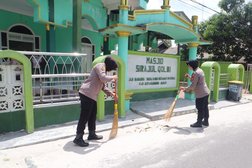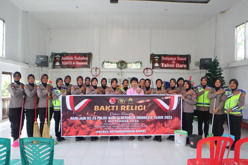 Kapolres Kotawaringin Barat AKBP Bayu Wicaksono, S.H., S.I.K., M.Si., melalui senior polwan Polres Kotawaringin Barat AKP Paramita Harumi, S.I.K., menyampaikan bahwa kegitan ini sebagai bentuk kepedulian polwan khususnya pada rumah ibadah.