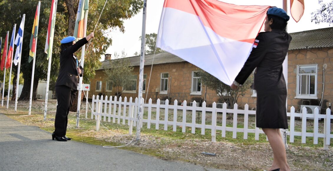 Dua Polwan yang menjadi Pasukan Garuda, IPTU Anita Tri KD dan BRIGADIR Tika Nur Pratiwi, melaksanakan sebagai petugas dalam proses pengibaran bendera Merah Putih diiringi lagu kebangsaan Indonesia Raya yang dihadiri SRSG dan Konsul Kehormatan Indonesia untuk Siprus sebagai tamu kehormatan