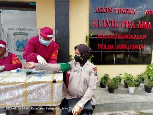 Sejalan dengan terbitnya surat edaran Kemenkes Republik Indonesia, salah satu Polwan Polres Bangkalan yang tengah hamil kini pun juga melakukan vaksin. Ialah Bripka Vicky Hartinanda Muin, S.H. anggota Urpers Bagsumda Polres Bangkalan ini pun melakukan vaksin tak lama setelah surat edaran kemenkes terbit. Bagi Bripka Vicky, vaksinasi covid-19 tentu sangat penting untuk melindungi si jabang bayi dan juga ibunya.