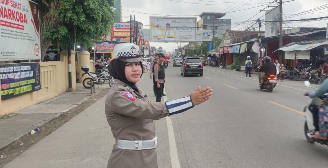 Polwan Polres Cilegon Bantu Sukseskan Pelaksanaan One Way Sistem Arah Keluar Wisata Pantai