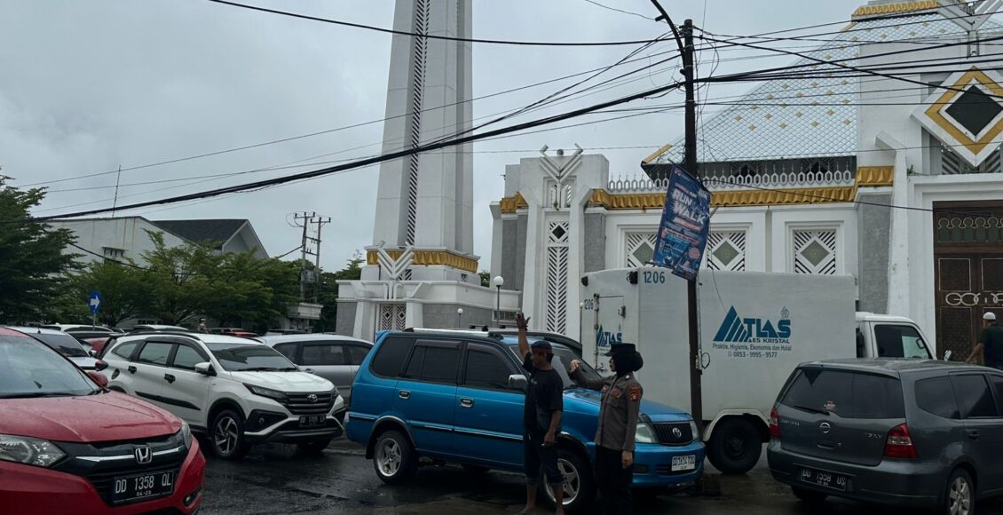 Selain itu, mereka juga melaksanakan pengaturan lalulintas dan memberikan imbauan kepada masyarakat agar tetap waspada terhadap tindakan kriminalitas dan selalu menjaga barang berharga saat beribadah.