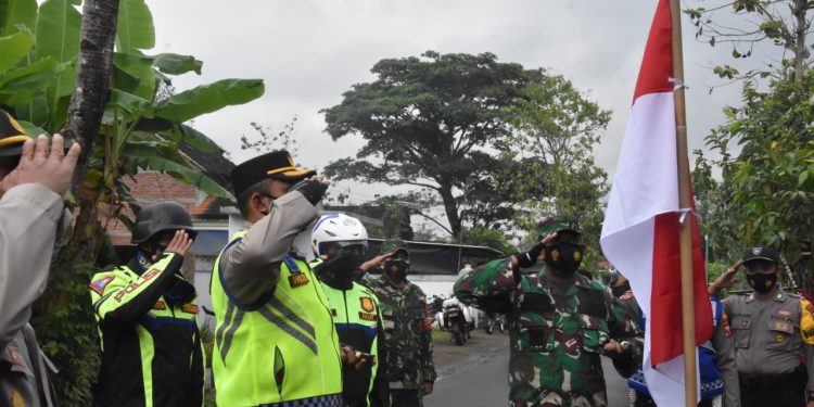 “Iya benar, hari ini Polres Trenggalek bersama Kodim 0806 menggelar pembagian dan pengibaran bendera di sejumlah wilayah.” Ujar AKBP Dwiasi.