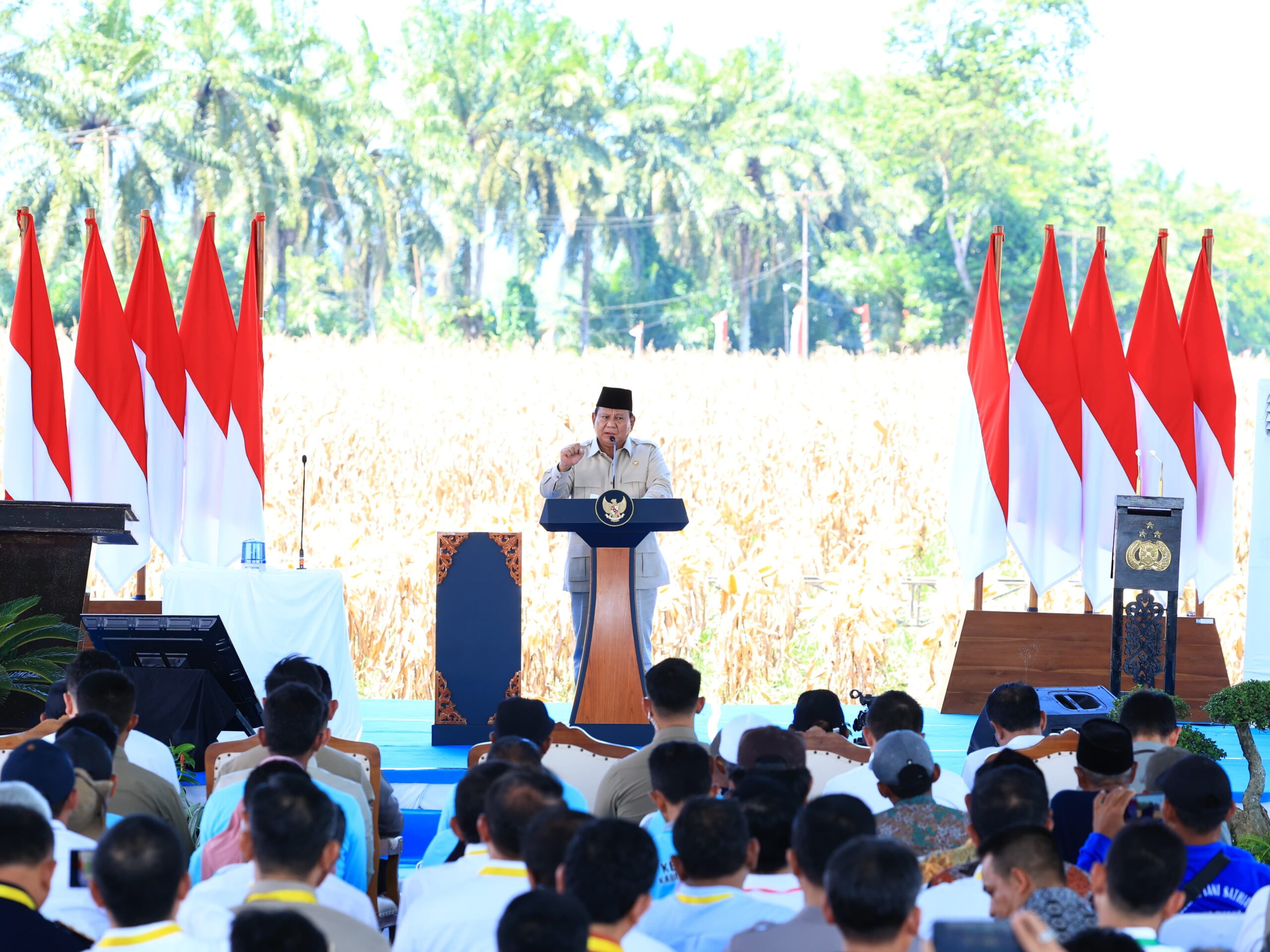 “Dan saya terima kasih Kapolri nangkap, apa yang dilakukan Kapolri dengan jajaran Polri selama ini mengambil inisiatif, meraih suatu peran, mengatakan polisi ingin ikut serta dalam usaha kedaulatan pangan, dalam usaha swasembada pangan karena swasembada pangan adalah kunci daripada keamanan, swasembada pangan adalah kunci dari kemerdekaan, tidak ada bangsa yang merdeka kalau tidak bisa produksi pangannya sendiri,” terang Presiden Prabowo.