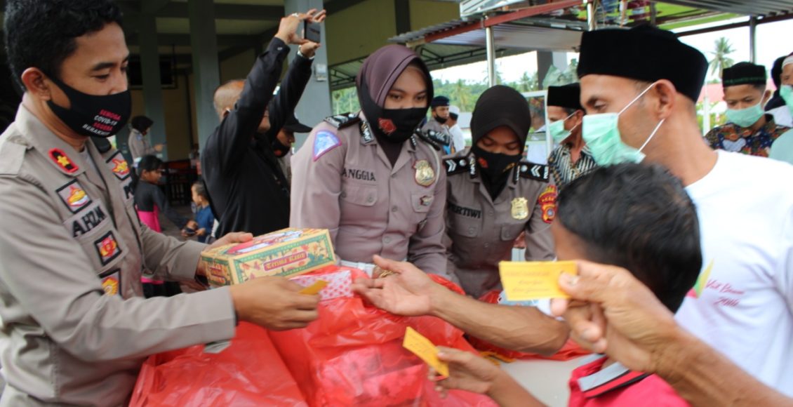 LHOKSEUMAWE,IKAGAWANEWS.ID – Polres Lhokseumawe menggelar Program Jum’at Baroqah dengan membagikan 500 porsi paket nasi kepada Warga di rumah makan sate Berandang di kawasan Kec. Sawang,Kab. Aceh Utara wilayah hukum Polres Lhokseumawe, jum’at (11/9/2020) siang.