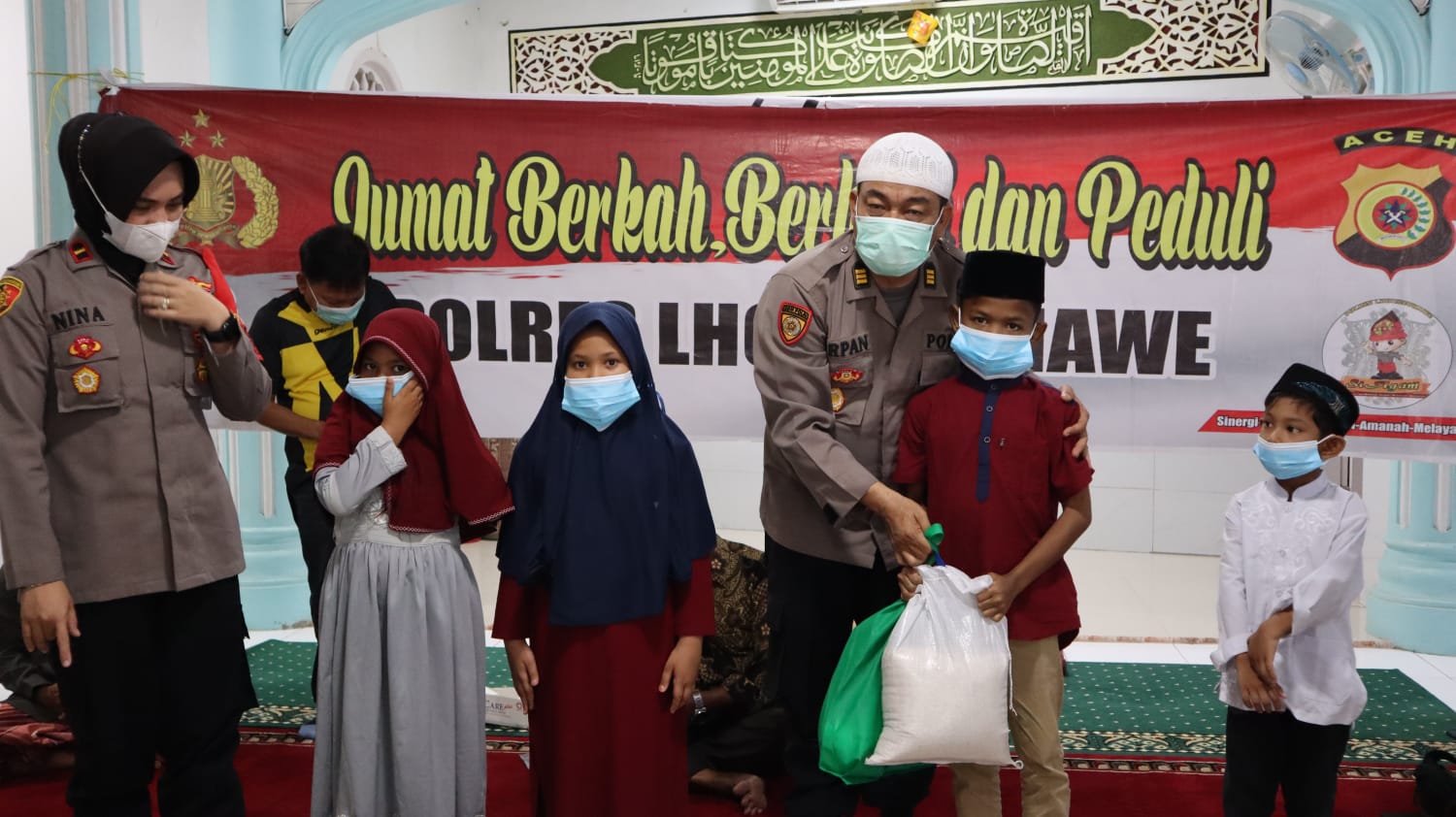 Menurut Kabag Sumda, Jum’at Berkah Berbagi dan Peduli itu merupakan program dari Kapolres Lhokseumawe AKBP Eko Hartanto SIK MH. Tujuannya, untuk meringankan beban ekonomi keluarga anak – anak yatim ini di masa pandemi Covid-19.