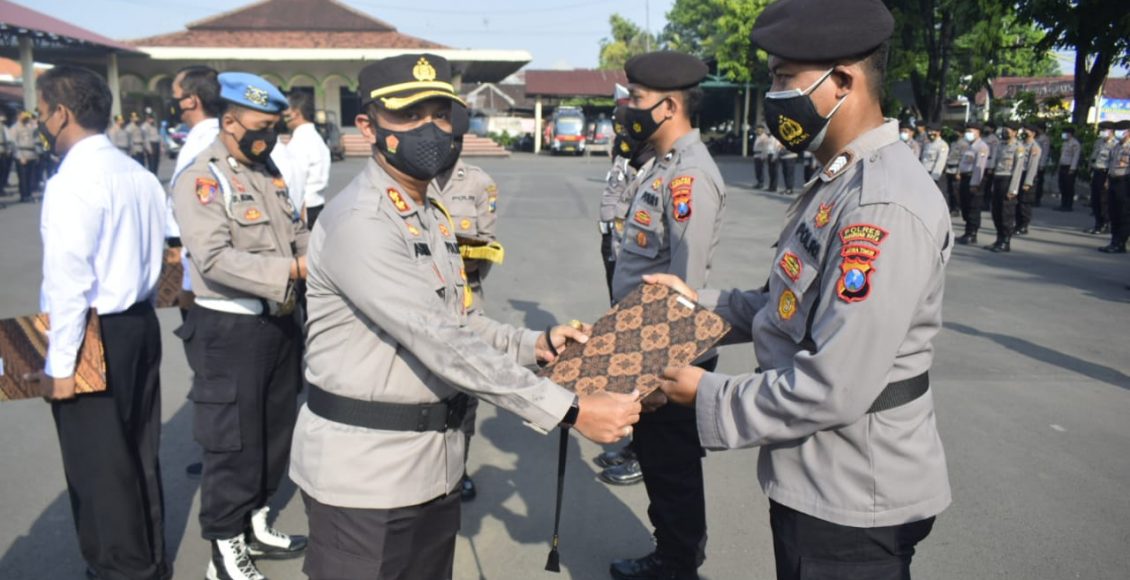 Pasuruan Kota,ikagawanews.id – Kapolres Pasuruan Kota AKBP Arman S.I.K M.SI memberikan penghargaan (reward) kepada 22 anggotanya yang berprestasi dalam melaksanakan tugas pokok fungsi maupan tugas kemanusiaan, salah satu diantanya Bripka Purwanto anggota Sat Binmas yang ramah, baik juga sosok polri penggerak cinta sholawat di kalangan pelajar dan remaja, Pemberian reward ini dilakukan melalui upacara di halaman Gedung Wicaksana Laghawa Polres Pasuruan Kota, Rabu (10/11/2021).