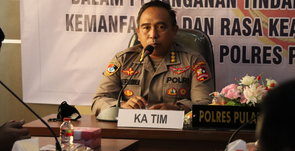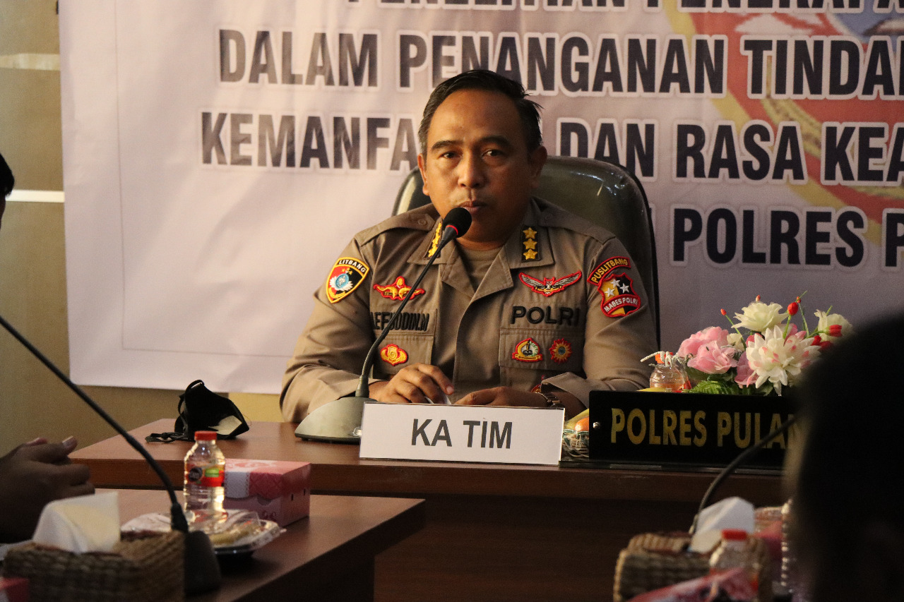 Kapolres Pulang Pisau AKBP Kurniawan Hartono, S.I.K., dalam sambutannya mengucapkan selamat datang dan ucapan terima kasih kepada Tim Puslitbang Polri atas kunjungan di Polres Pulang Pisau, Polda Kalteng, dalam rangka penelitian tentang penerapan Restorative justice (keadilan restoratif).