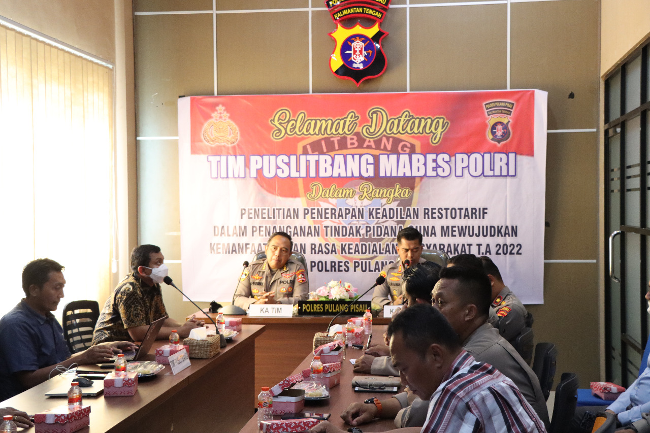 Ketua Tim Puslitbang Polri Kombes Pol Saefuddin Mohamad, S.I.K., menjelaskan maksud dan tujuan penelitian dari pusat langsung ke daerah kewilayahan ini adalah untuk menganalisis, memperoleh data, fakta dan informasi serta masukan dari publik atau masyarakat terhadap kinerja Polri khususnya terkait penerapan Restorative justice (keadilan restoratif) di Polres Pulang Pisau.