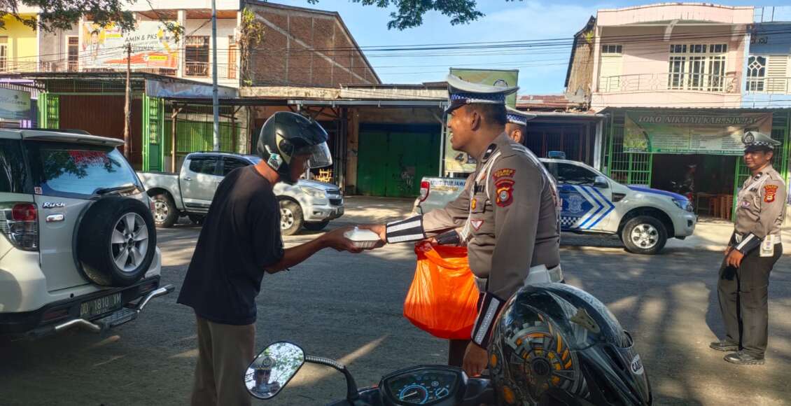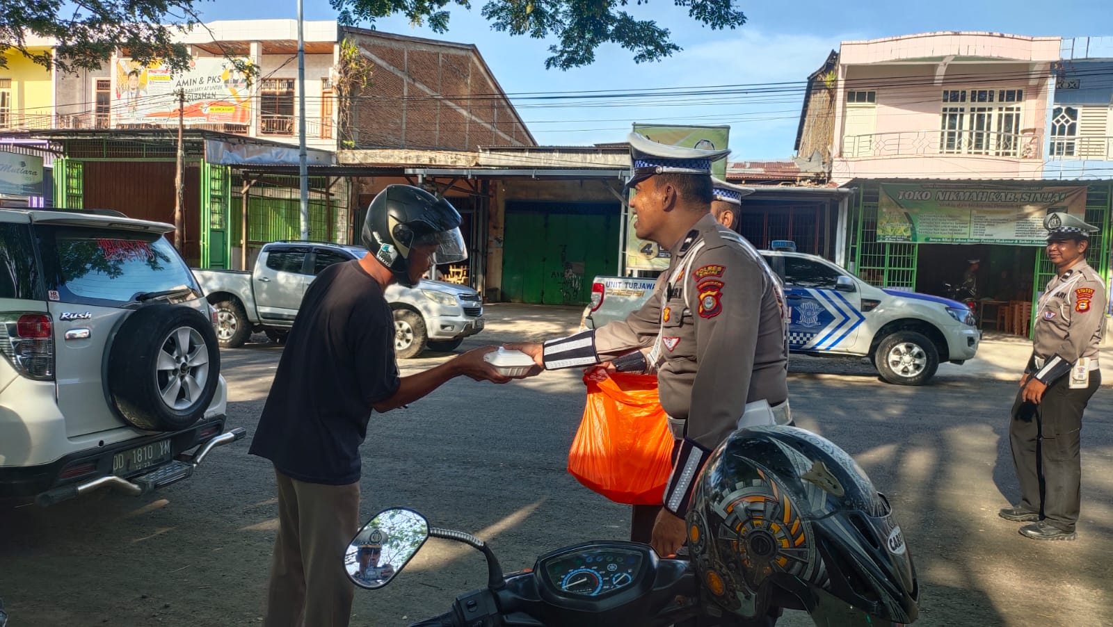Pada Jum’at pagi yang cerah, personel Sat Lantas Polres Sinjai berkumpul dijalan persatuan jalan di beberapa titik, Dengan penuh semangat, mereka menyiapkan puluhan nasi kotak yang berisi makanan lezat dan bergizi. Setiap nasi kotak diberikan dengan harapan dapat mencerahkan harinya dan memberikan keberkahan kepada penerima.