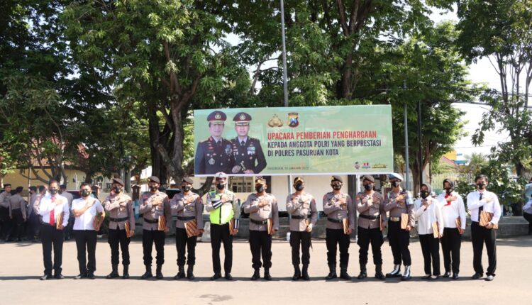 Pasuruan,ikagawanews.id  – Kapolres Pasuruan Kota AKBP R.M Jauhari S.H S.I.K M.SI memberikan penghargaan kepada belasan Personil Polres Pasuruan Kota bagian operator Zona Integritas WBK yang bertempat di Halaman Gedung Wicaksana Laghawa Polres Pasuruan Kota, Senin (10/1/2022).