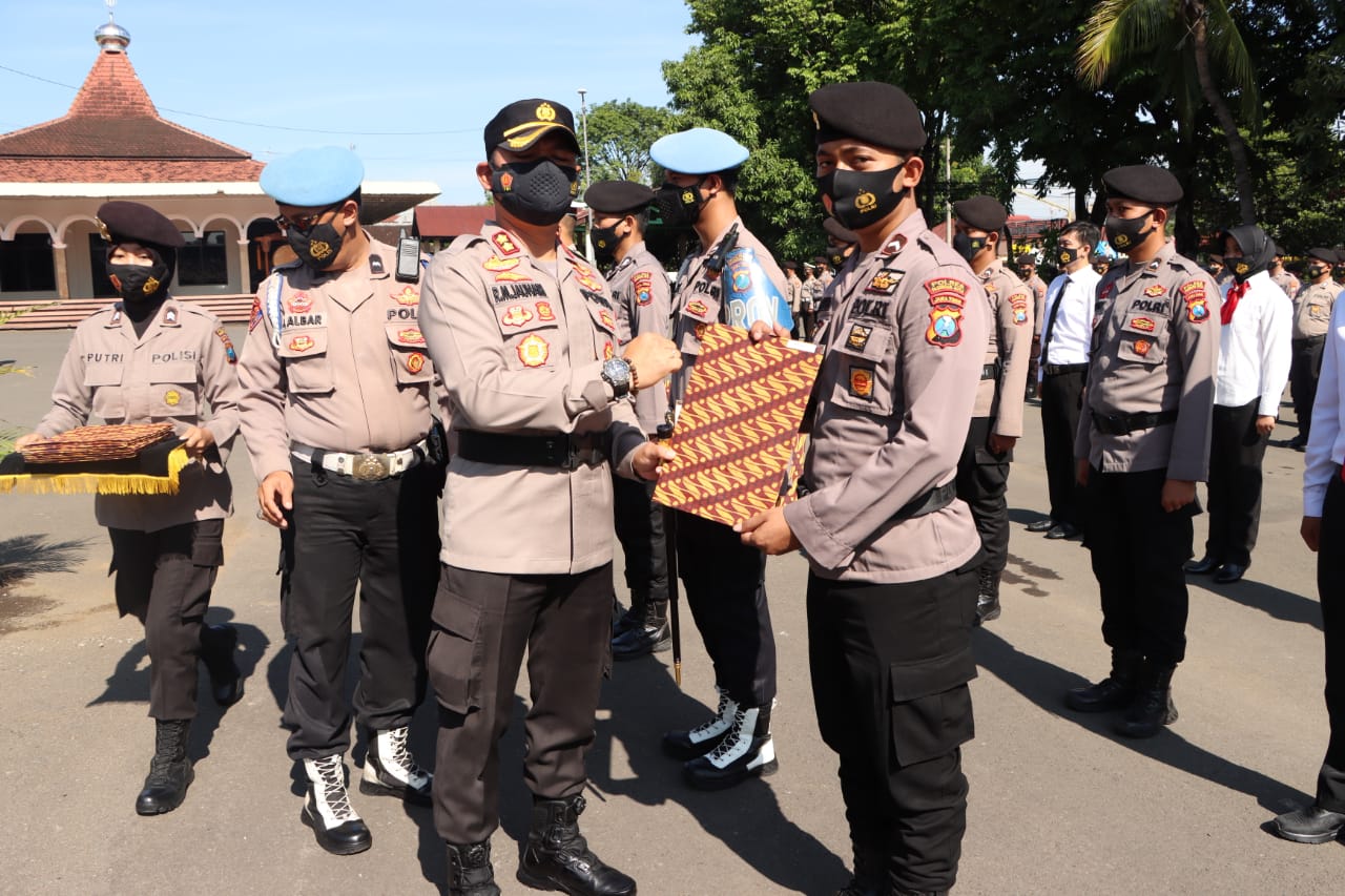 Turut hadir dalam upacara pemberian penghargaan Wakapolres Pasuruan Kota Kompol Hery Dian Wahono M.psi, para kabag, para kasat dan personel Polres Pasuruan Kota.