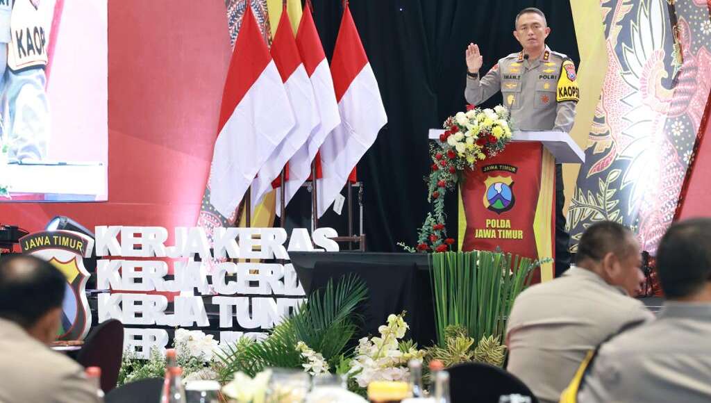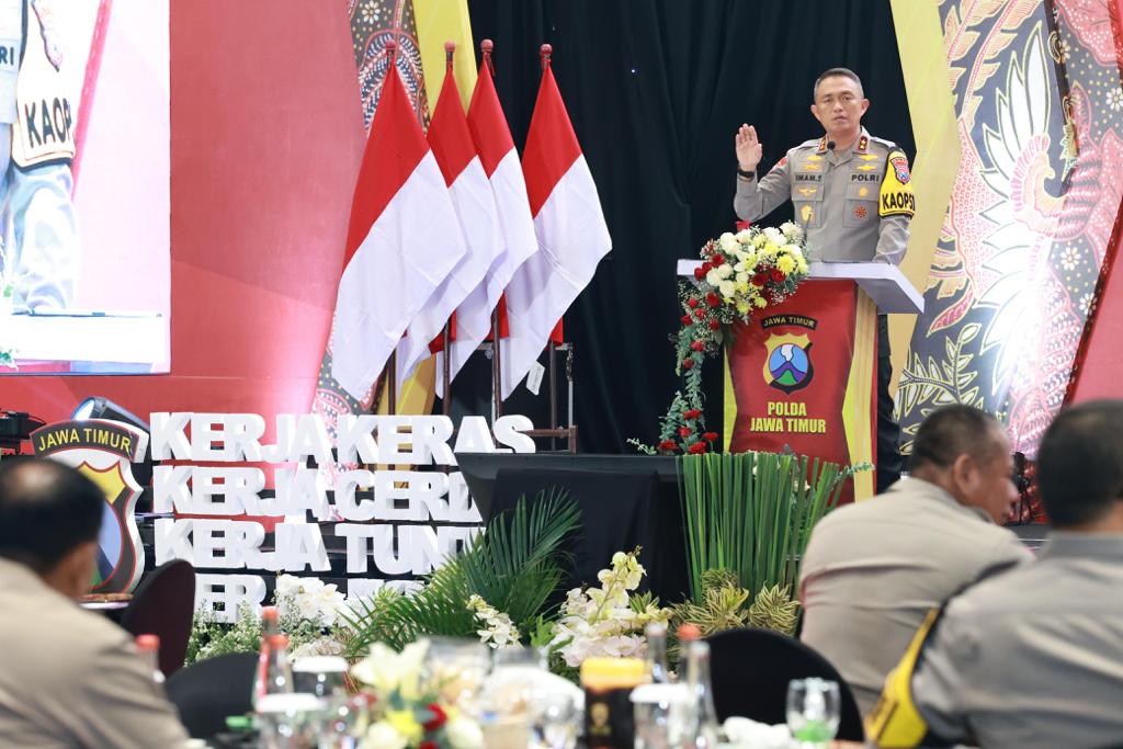“Bapak Kapolri kemudian menyampaikan empat hal, ini disampaikan pada saat rakernis SDM pada TA 2023 di Jogja. Pertama menyiapkan SDM Polri yang unggul agar mampu mengawal dan mengamankan seluruh program kebijakan pemerintah termasuk agenda pemilu di tahun 2024,” kata Kapolda Jatim dalam arahannya.
