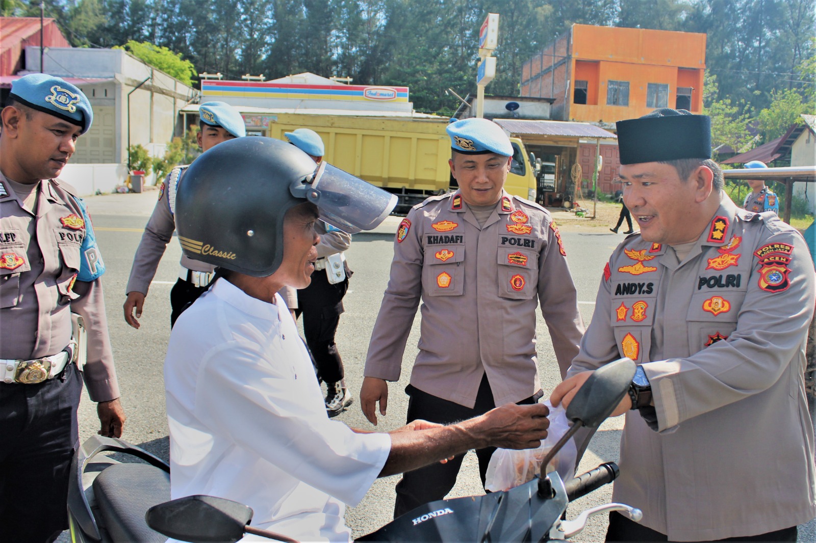 Kapolres Aceh Jaya AKBP Andy Sumarta, S.I.K., mengatakan bahwa berbagi takjil ini adalah bentuk kebersamaan dan kepedulian kepada masyarakat yang sedang menjalankan ibadah puasa.