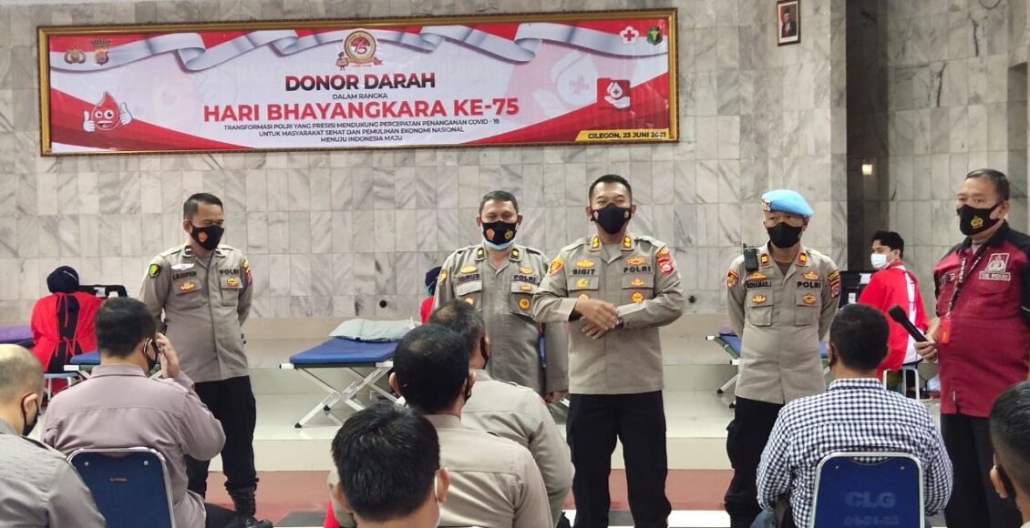 Kapolres Cilegon AKBP Sigit Haryono, S.ik, SH mengatakan hari ini Polres Cilegon Polda Banten melaksanakan kegiatan donor darah dalam rangka hari Bhayangkara ke 75 dengan tema transformasi Polri yang presisi mendukung percepatan penanganan covid 19 untuk masyarakat sehat dan pemulihan ekonomi nasional menuju Indonesia maju.