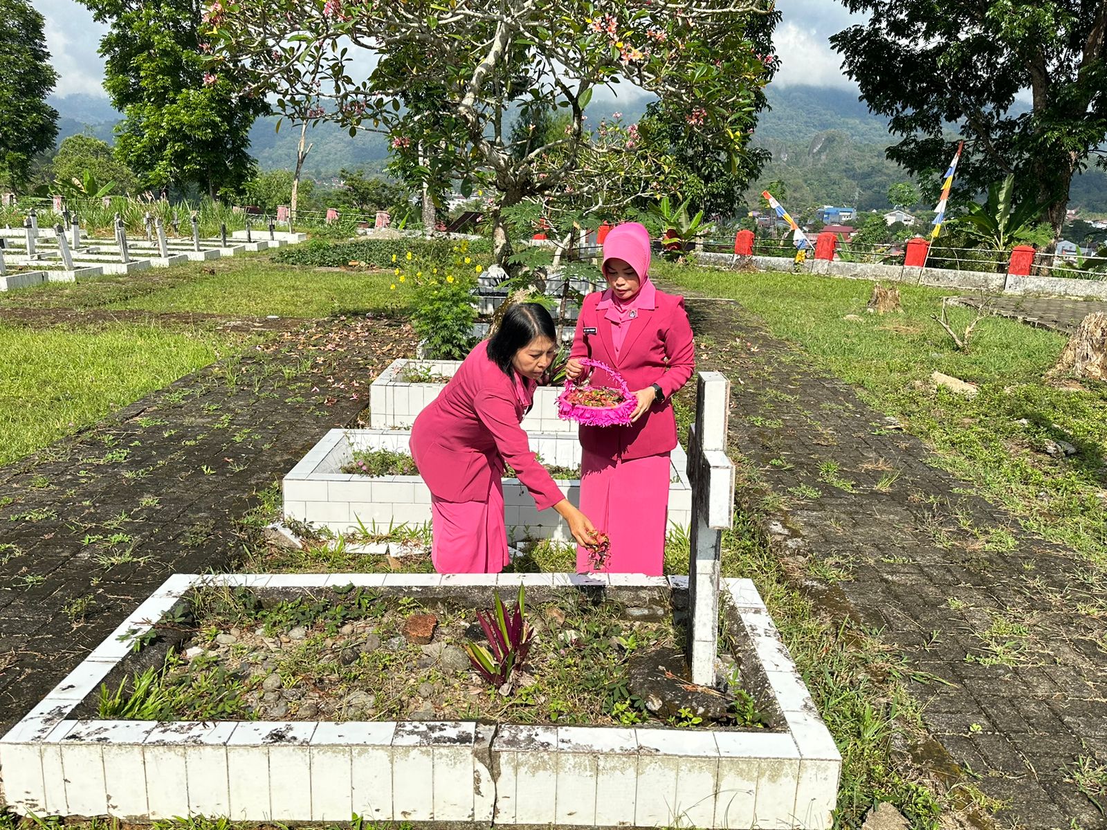 Kegiatan tersebut dipimpin langsung Wakil Ketua Bhayangkari Cabang Toraja Utara Ny. Alfrida Marthen yang dilaksanakan di Taman Makam Pahlawan (TMP) Buntu Lepong, Rante Pasele, Kecamatan Rantepao Kabupaten Toraja Utara, Senin (14/10/2024) pagi.