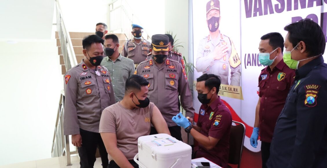 “Vaksinasi booster kita laksanakan seluruh anggota Polres Gresik. Tujuannya menjaga imunitas,”kata Kapolres Gresik.