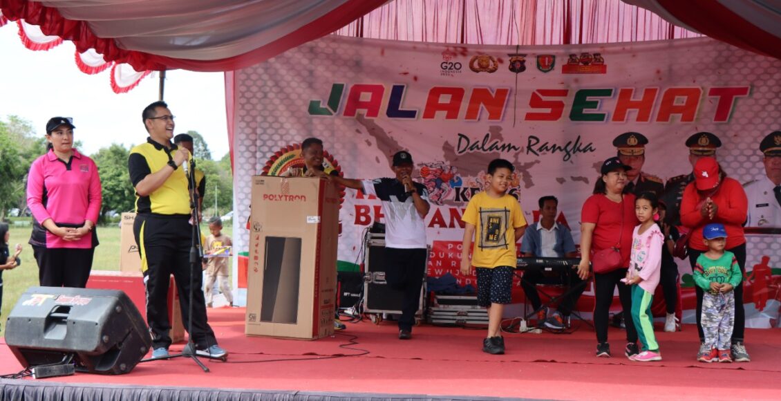Jalan sehat semakin meriah dengan peserta yang berasal dari lintas instansi. Selain diikuti personel Polri, Bhayangkari dan pejabat utama Polres Katingan, juga unsur TNI dan Forkopimda Katingan serta masyarakat Kab. Katingan.