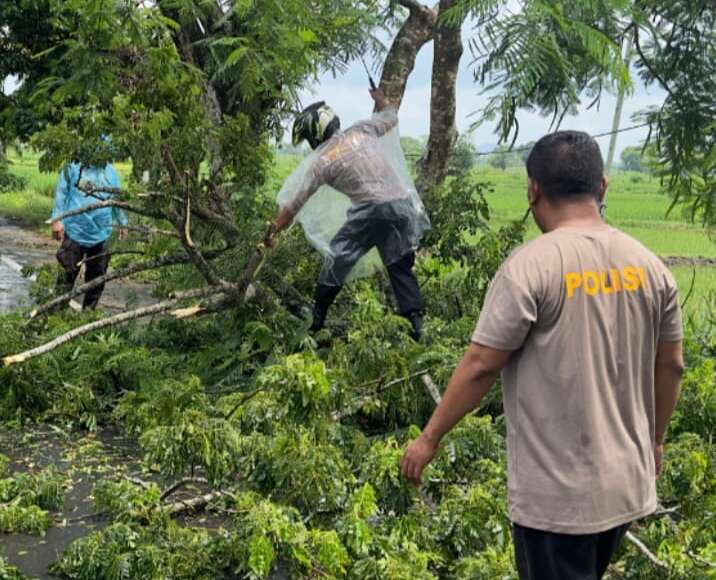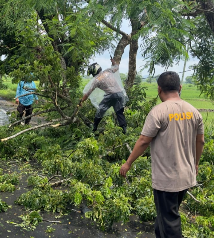 Respon Cepat Polsek Praya Barat Evakuasi Pohon Tumbang