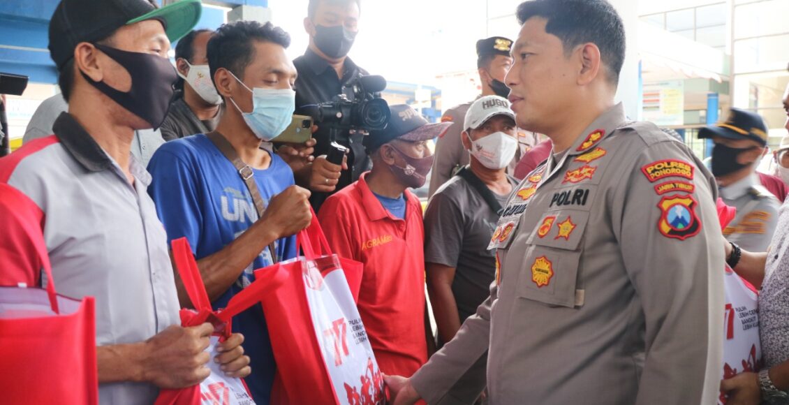 “Disini kita dalam rangka berbagi untuk meringankan masyarakat yang terkena dampak kenaikan BBM,” tutur Kapolres Ponorogo AKBP Catur C. Wibowo