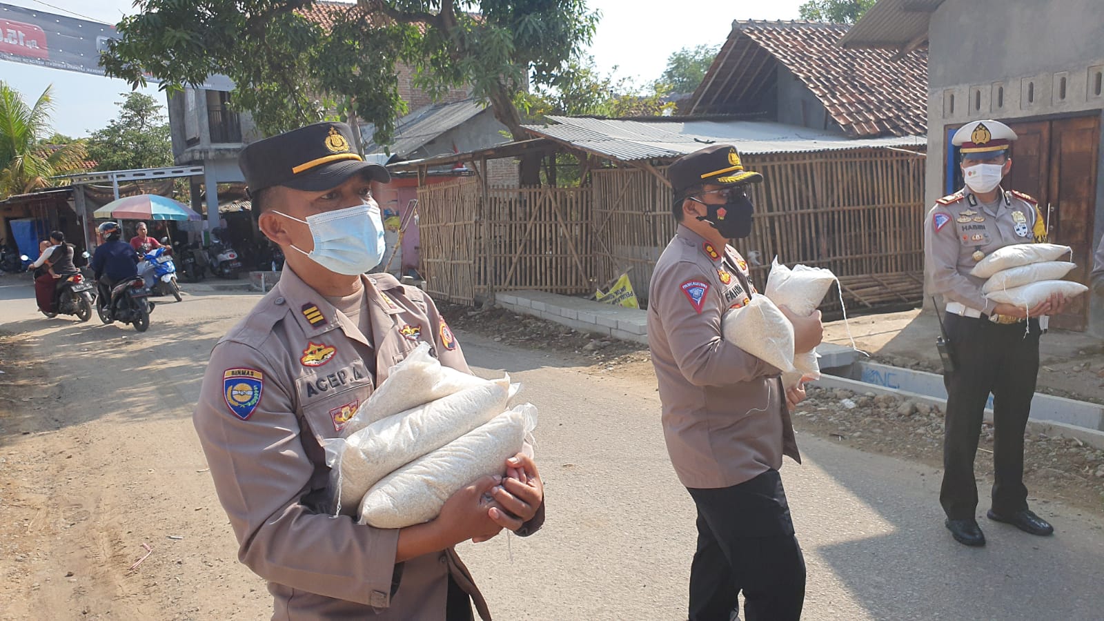 Kapolres cirebon kota AKBP M.FAHRI SIREGAR S.H, S.Ik, M.H melalui kasi humas Ciko menyampaikan ” kembali polres Ciko menyalurkan bantuan paket sembako ke warga terdampak covid-19 Kepada warga rt 01 rw 05 Blok Kagungan Desa Banjarwangunan sebanyak 100 paket beras @ 3 Kg. Juga Kepada warga Desa Klayan sebanyak 10 Paket Beras @ 5 Kg. Serta Kepada warga Kel. Karyamulya Kec.Kesambi Sebanyak 20 Paket Beras @ 5 Kg. Bantuan paket sembako ini dibagikan kepada warga kurang mampu “. Tegasnya.