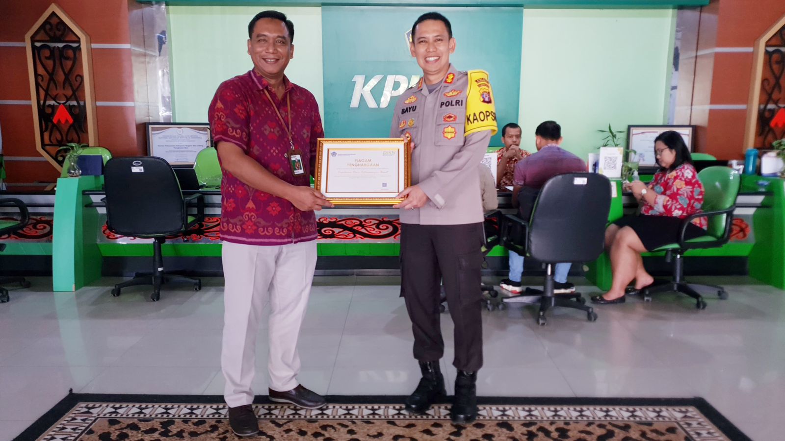 Orang nomer satu di polres ini menerima penghargaan dari Ketua KPKNL Pangkalan Bun, sebagai Apresiasi setinggi tingginya selama memimpin di Polres Kotawaringin Barat.