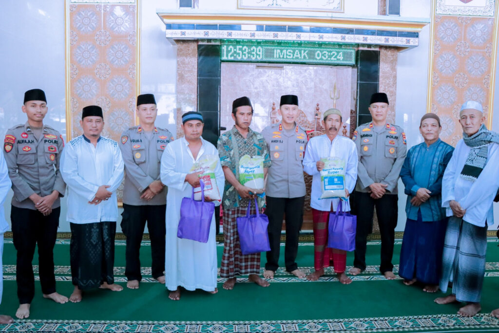 Setelah menyampaikan pesan kamtibmas kepada jamaah dan masyarakat, Kapolres Situbondo AKBP Dr. Andi Sinjaya, S.H., S.I.K., M.H. memberikan bingkisan kepada takmir masjid Masjid Nurul Hidayah.