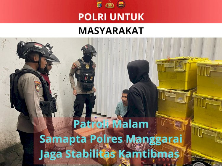 MANGGARAI,ikagawanews.id – Dalam upaya menjaga situasi keamanan dan ketertiban masyarakat (Kamtibmas) yang kondusif, pada Sabtu, 15 Maret 2025 pukul 21.00 WITA, anggota Samapta Polres Manggarai melaksanakan kegiatan Patroli Perintis Presisi. Patroli ini mencakup patroli dialogis dan penyampaian himbauan Kamtibmas dengan menyusuri berbagai wilayah di Kota Ruteng.