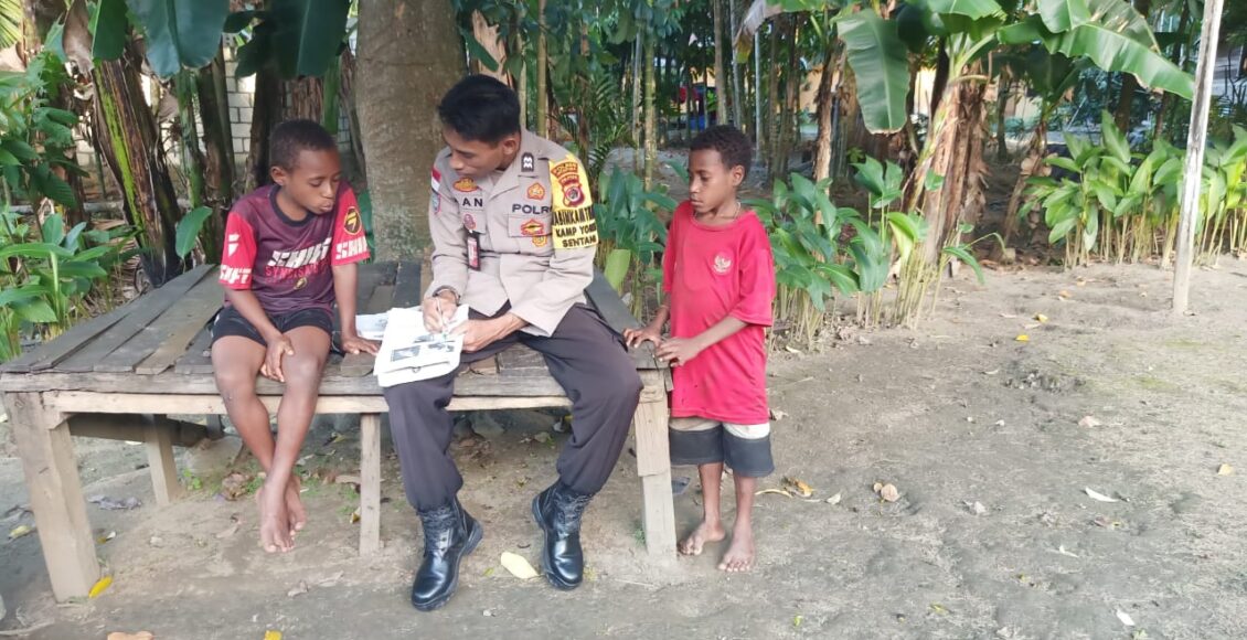 Sambangi Peserta Didiknya, Bhabinkamtibmas di Sentani Kembali Ajarkan Baca Tulis