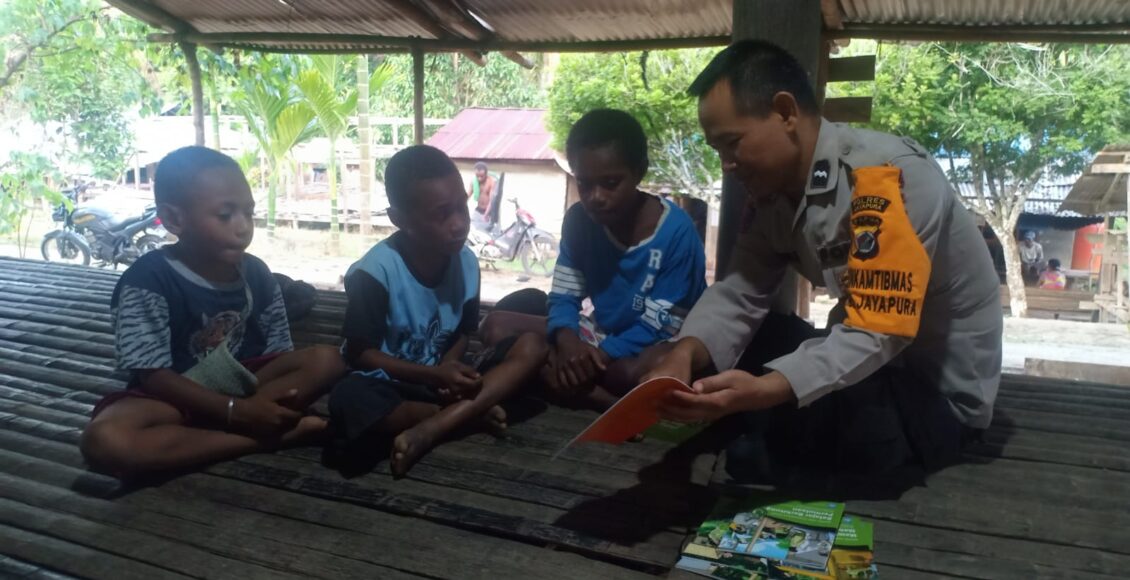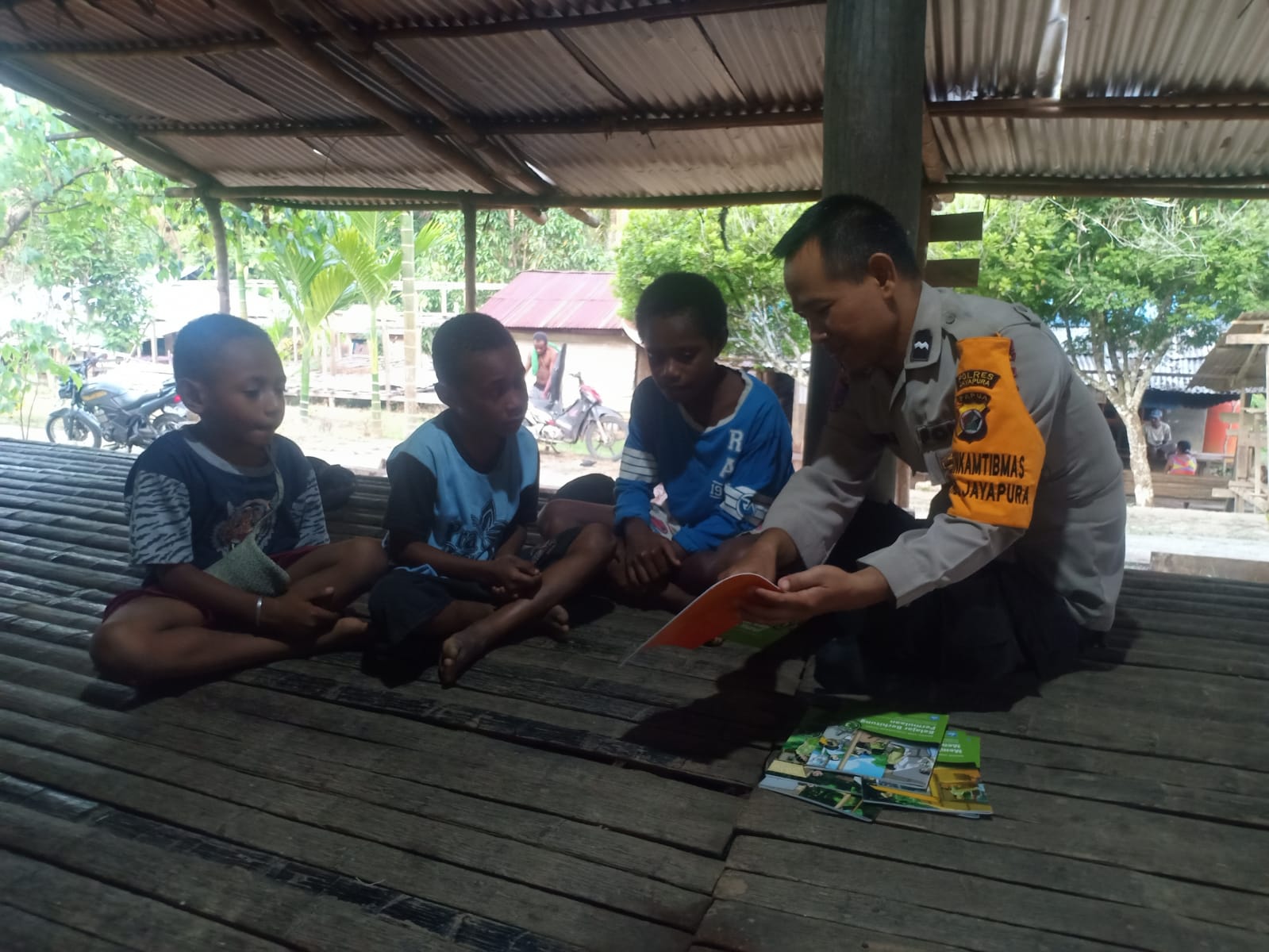 Dengan rasa tanggung jawab besar untuk bersama berantas buta aksara Program gerakan baca tulis (GABUS), Bhabinkamtibmas Aipda Krisbiantoro yang didampingi sekretaris kampung Permenas Samon menyambangi 3 anak – anak peserta didik Gat Samon (8), Nando Samon (7) dan Paulina Samon (7).