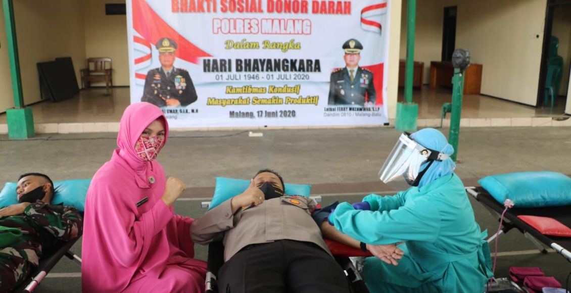 Dalam kesempatan ini Kapolres Malang beserta ibu ikut langsung giat donor darah ,Kapolres malang mengucapkan terima kasih kepada anggota yang telah menyumbangkan darahnya guna membantu sesama .