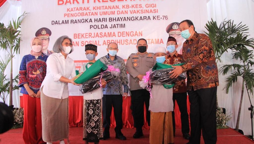 Pelaksanaan bakti kesehatan kali ini, Polda Jatim bekerjasama dengan Yayasan Abdihusada Utama dan JEC-Java untuk mensukseskan rangkaian kegiatan per 1 Juli 2022 dalam rangka menyambut hari ulang tahun Bhayangkara ke-76.